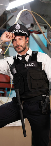Cuando el oficial de policía Papi obliga a Dimitry a entregarle la documentación por conducir sin ponerse el cinturón de seguridad ni la camiseta, se le pone más dura que su porra al ver la raja del culo del conductor asomando por encima de sus shorts.