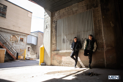 Apoyados en el muro, los dos se miran de reojo, pero Miguel no se toma muy bien las insinuaciones de Theo y le empuja contra la pared de forma agresiva, aunque no puede reprimirse y le besa.
