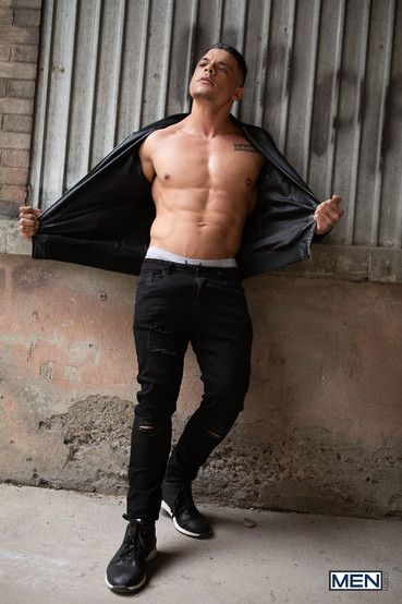 Theo está vapeando en la calle, detrás de un almacén, cuando se le aproxima el duro y musculoso Miguel y le pide una calada.
